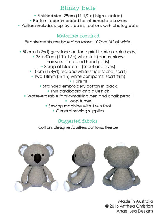 Blinky Belle Koala PDF Sewing Pattern