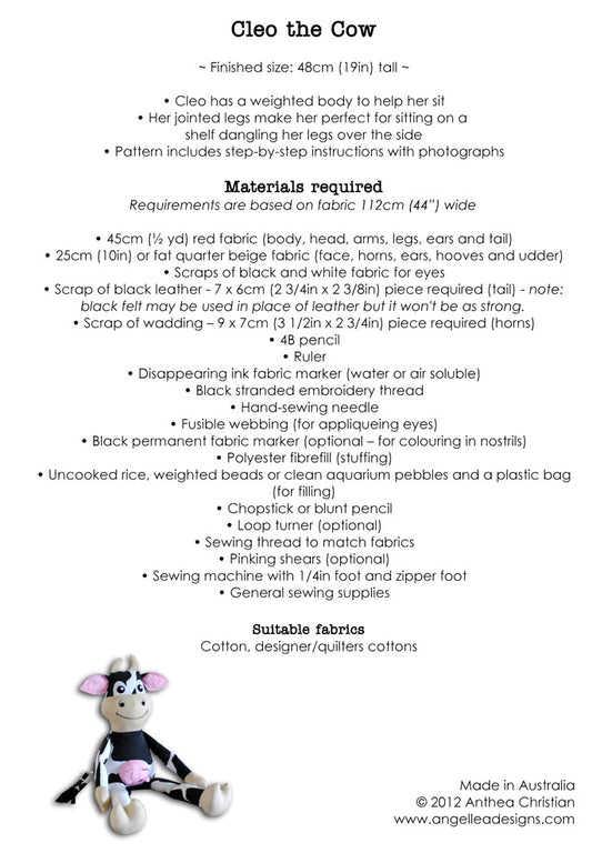Cleo the Cow Softie PDF Sewing Pattern