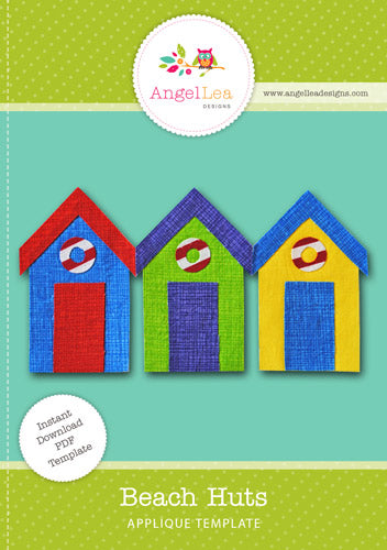 This beach huts applique pattern is designed for making raw edge fusible-web appliques.