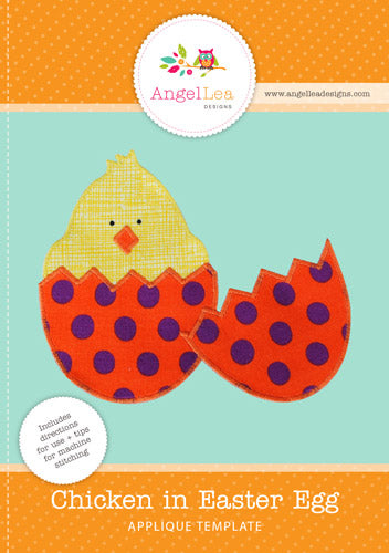 This chicken in egg applique pattern is designed for making raw edge fusible-web appliques.