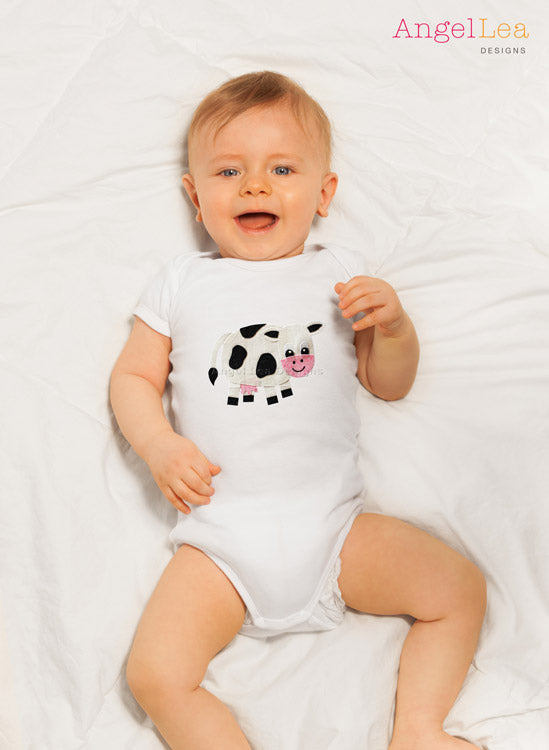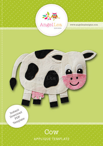This cow applique pattern is designed for making raw edge fusible-web appliques.