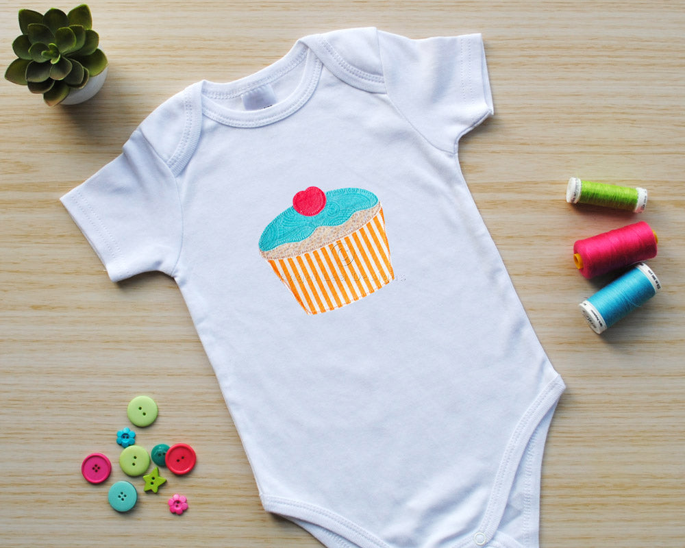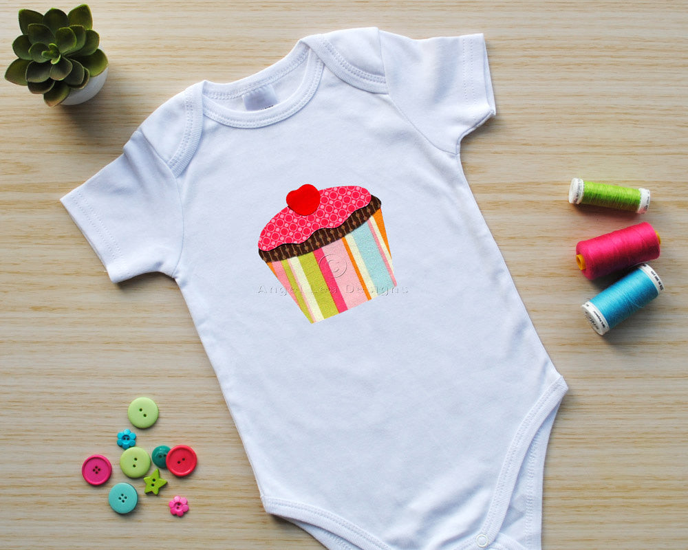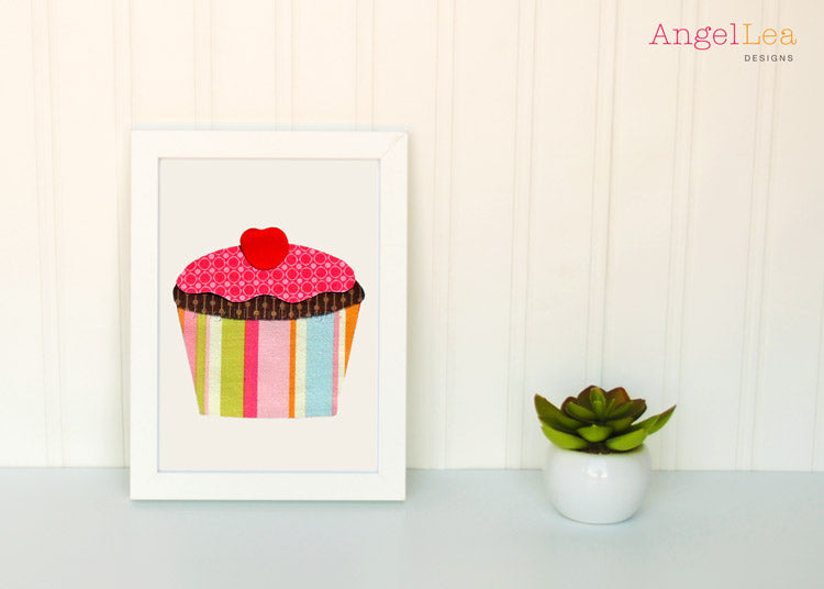 This cupcake applique pattern is designed for making raw edge fusible-web appliques.