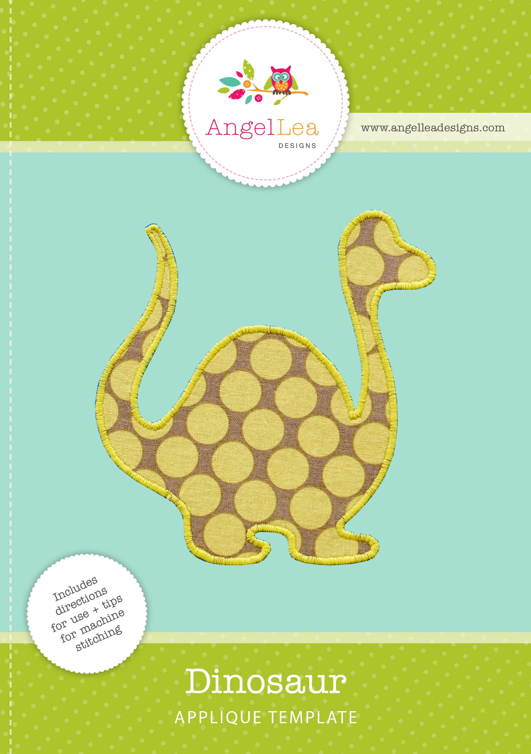 This dinosaur applique pattern is designed for making raw edge fusible-web appliques.