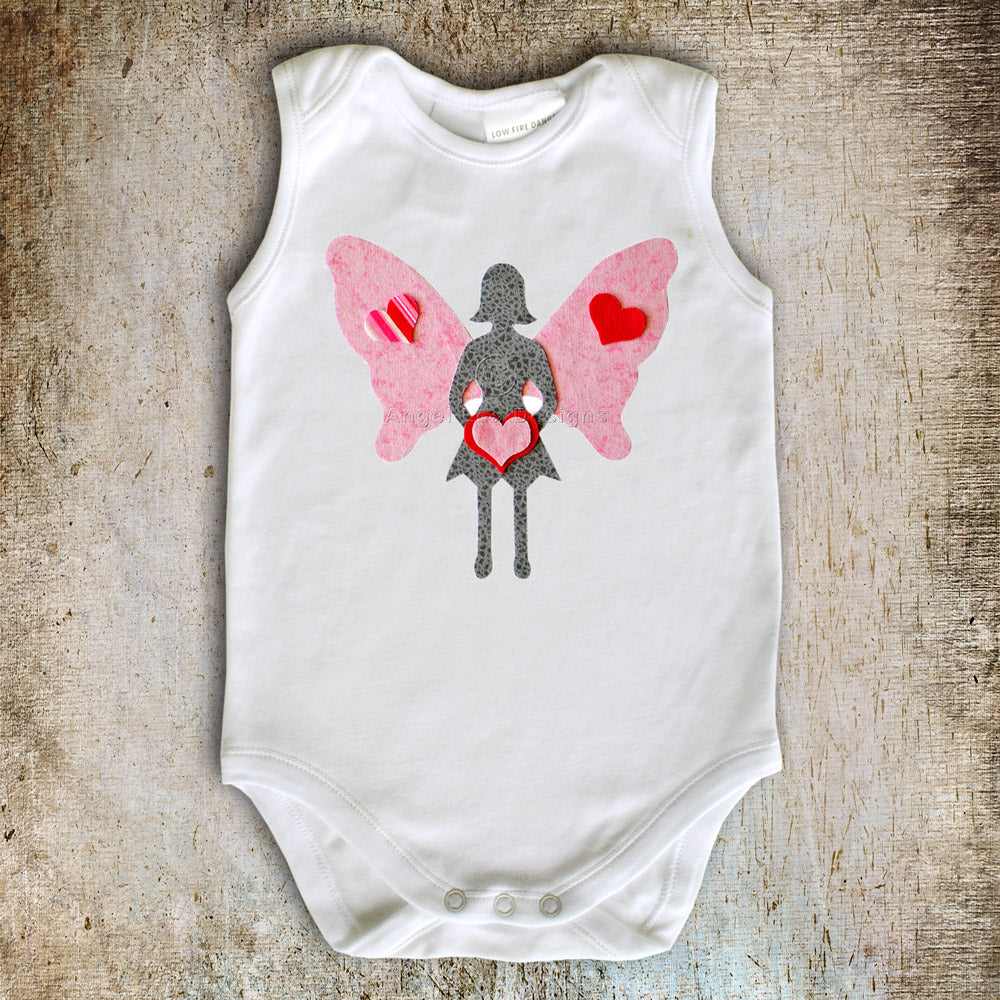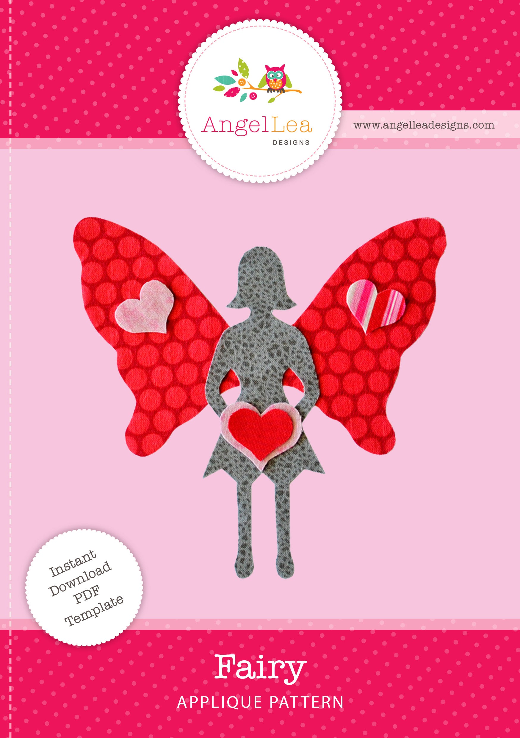 This fairy applique pattern is designed for making raw edge fusible-web appliques. Included with this pattern is the template for both the Valentine fairy and silhouette fairy.