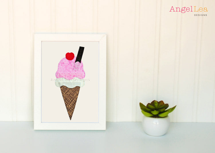 This ice cream applique pattern is designed for making raw edge fusible-web appliques.