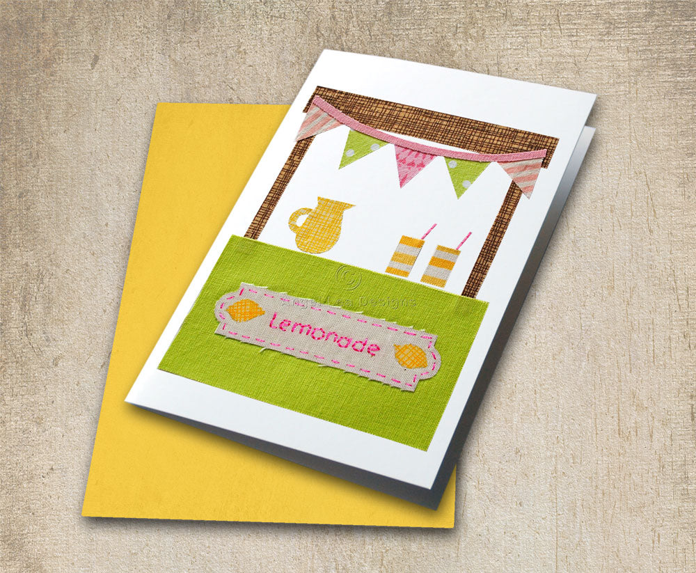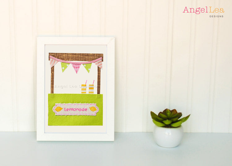This lemonade stand applique pattern is designed for making raw edge fusible-web appliques.