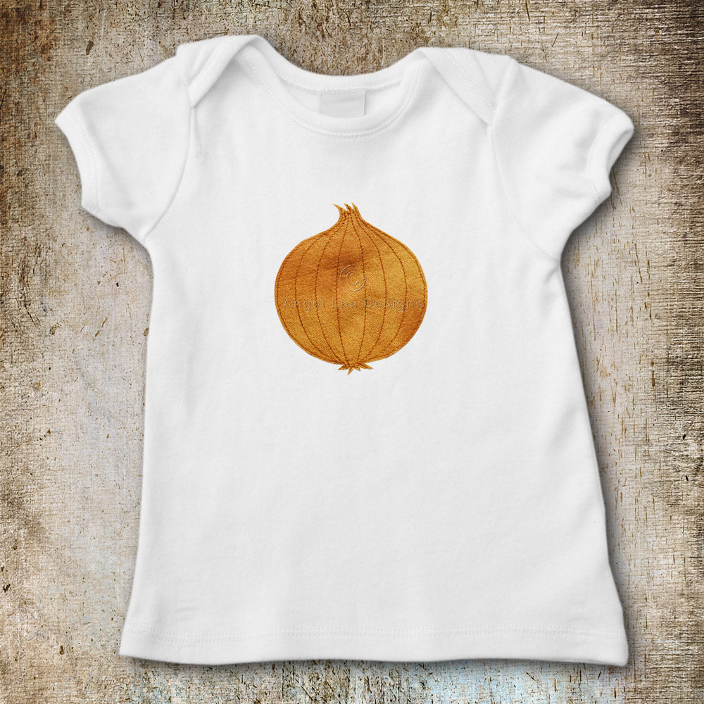 These onion applique designs are designed for making raw edge fusible-web appliques. The rings on the onions have been created by machine straight stitching, but could also be stitched on by hand. An erasable fabric marking pen is required to trace the rings onto the fabric before stitching.