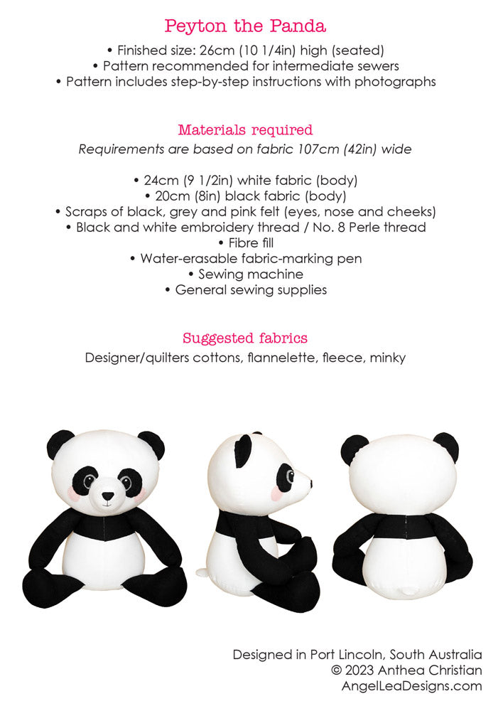 Personalise your panda by choosing different fabric colours and patterns. Add a bow, a cute accessory, or some pretty trim for a unique touch.