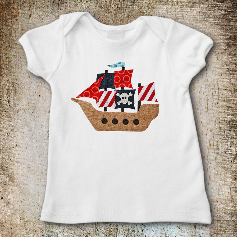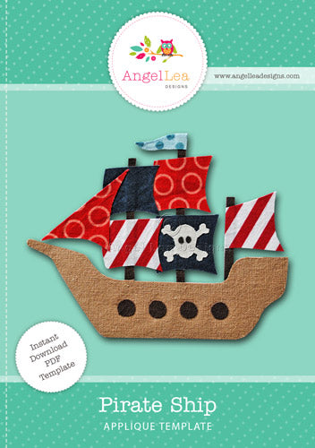 This pirate ship applique pattern is designed for making raw edge fusible-web appliques.