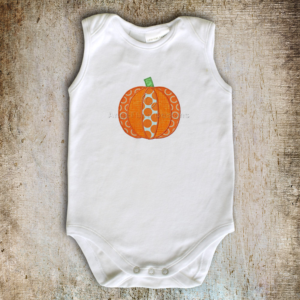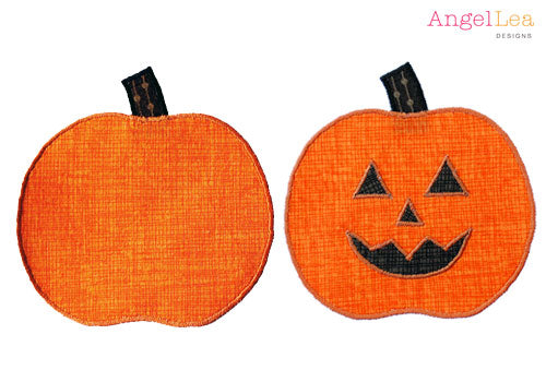 This pumpkin applique pattern is designed for making raw edge fusible-web appliques. It includes templates for the segmented pumpkin and Jack O Lantern.