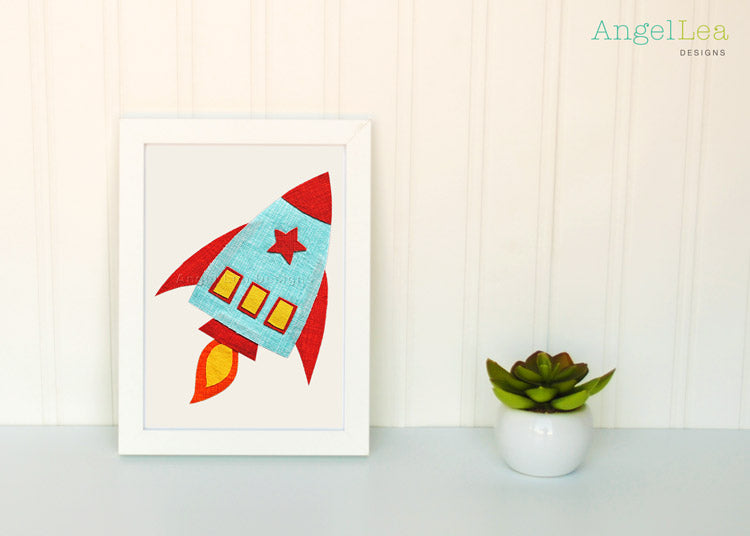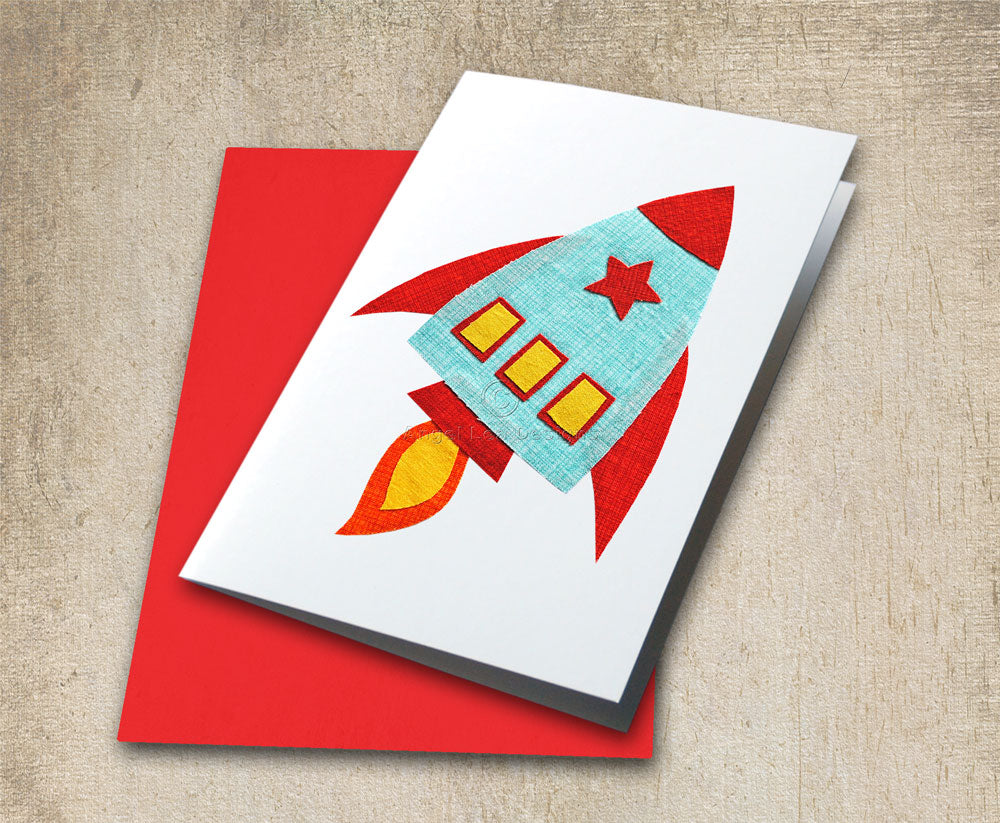 This rocket applique pattern is designed for making raw edge fusible-web appliques.