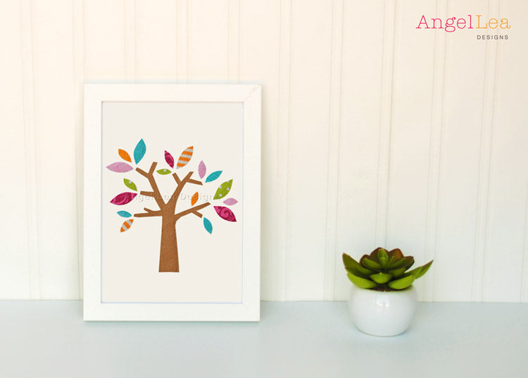This tree applique pattern is designed for making raw edge fusible-web appliques.