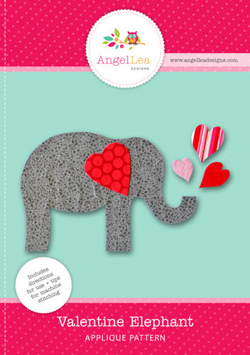 This valentine elephant applique pattern is designed for making raw edge fusible-web appliques.